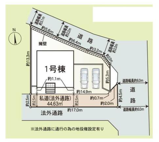 | 接道状況 | 東 6.0m公道 北 3.1m私道 |